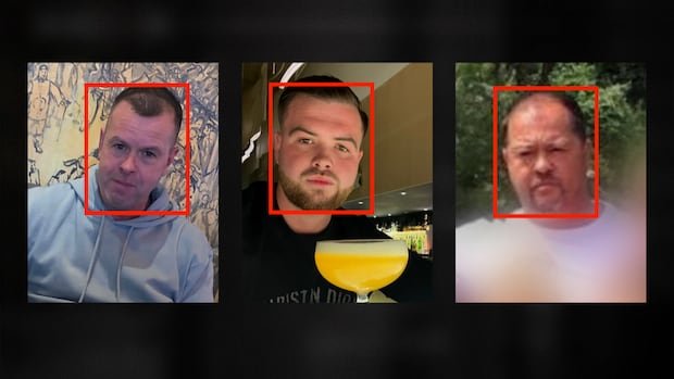 The CBC News investigation uncovered images of the three men by tracing social media profiles and verifying them by geolocating photos, tracing family and friend groups and cross-referencing posted details like birthdays and vacations.