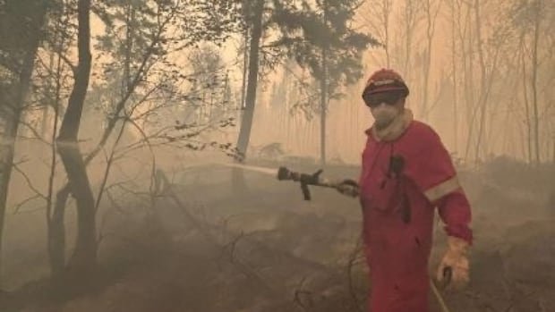 “I can name probably half a dozen other sites across Canada where you have this kind of … landscape-level pollution from this historical industrial contamination in the boreal, which is a fire ecosystem,” McCarter said, mentioning Thompson which is about 15 kilometres southwest of another wildfire.